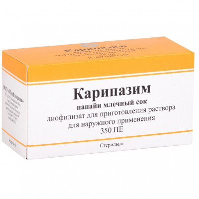 Карипазим изготавливают из Прокарипазима экстракта сухого, получаемого из Папайи млечного сока высушенного.