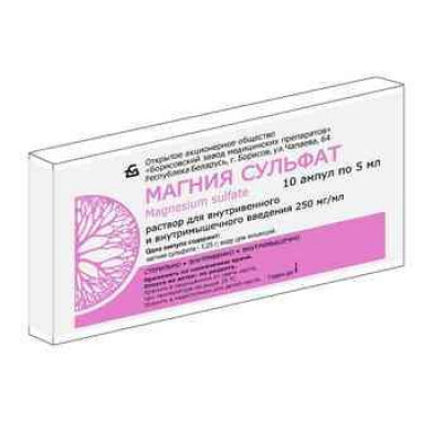 МАГНИЯ СУЛЬФАТ 250МГ/МЛ. 5МЛ. №10 Р-Р Д/В/В АМП. /БОРИСОВСКИЙ/