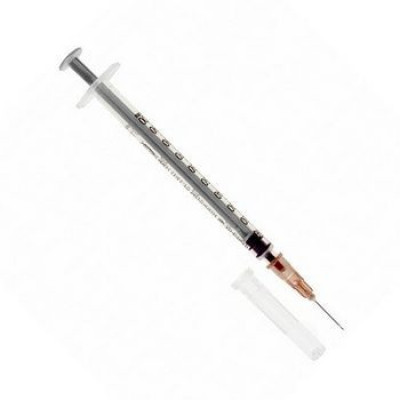 Шприц с канюлей , прозрачным корпусом, точной градуировкой, хорошей читаемостью, плавным, без трения скольжением поршня, стопорным кольцом для предотвращения потери лекарственного препарата, пирогенологический, одноразовый. Стерилизация с помощью этиленоксида. Тип 3-компонентный, игла 26G x 1/2" (0,45 мм x 12 мм).