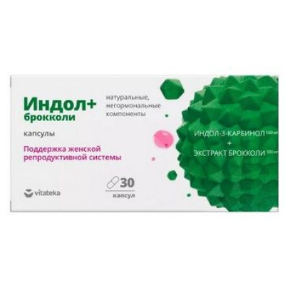 Комплексный продукт, способствующий поддержанию здоровья репродуктивной системы (молочная железа, шейка матки, яичники, эндометрий). Индол-3-карбинол - биологически активное вещество, использующееся для профилактики и борьбы с эстрогензависимыми образованиями и образованиями, вызванными вирусом папилломы человека. Форма выпуска позволяет сохранить вещество в заявленном количестве на протяжении всего срока годности, в то время как природные источники индол-3-карбинола теряют большую часть при длительном хранении и в процессе приготовления пищи. Формула состава обогащена также экстрактом брокколи, способствующим повышению эффективности индол-3-карбинола и усилению его действия.