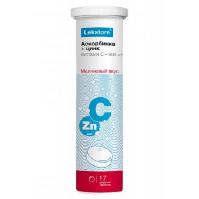 ЛЕКСТОР АСКОРБИНКА ПЛЮС ВИТ.С ЦИНК МАЛИН.ВКУС 900МГ. №17 ШИП.ТАБ. /ТИГОДА-ФАРМ/